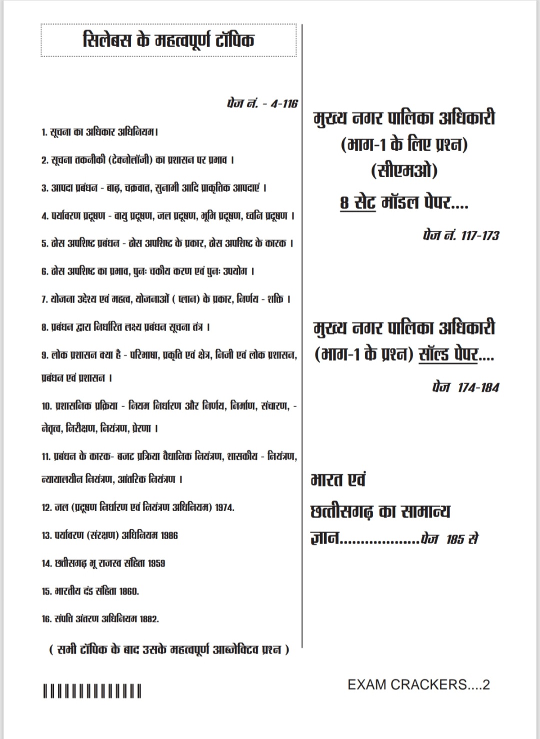 CGPSC CMO | मुख्य नगर पालिका अधिकारी (कम्प्लीट स्टडी मटेरियल) EXAM CREAKER